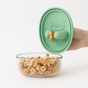 The silicone lid creates a secure barrier between hands and snacks. It keeps dirt and germs out while still making it easy to grab snacks without opening the container.
